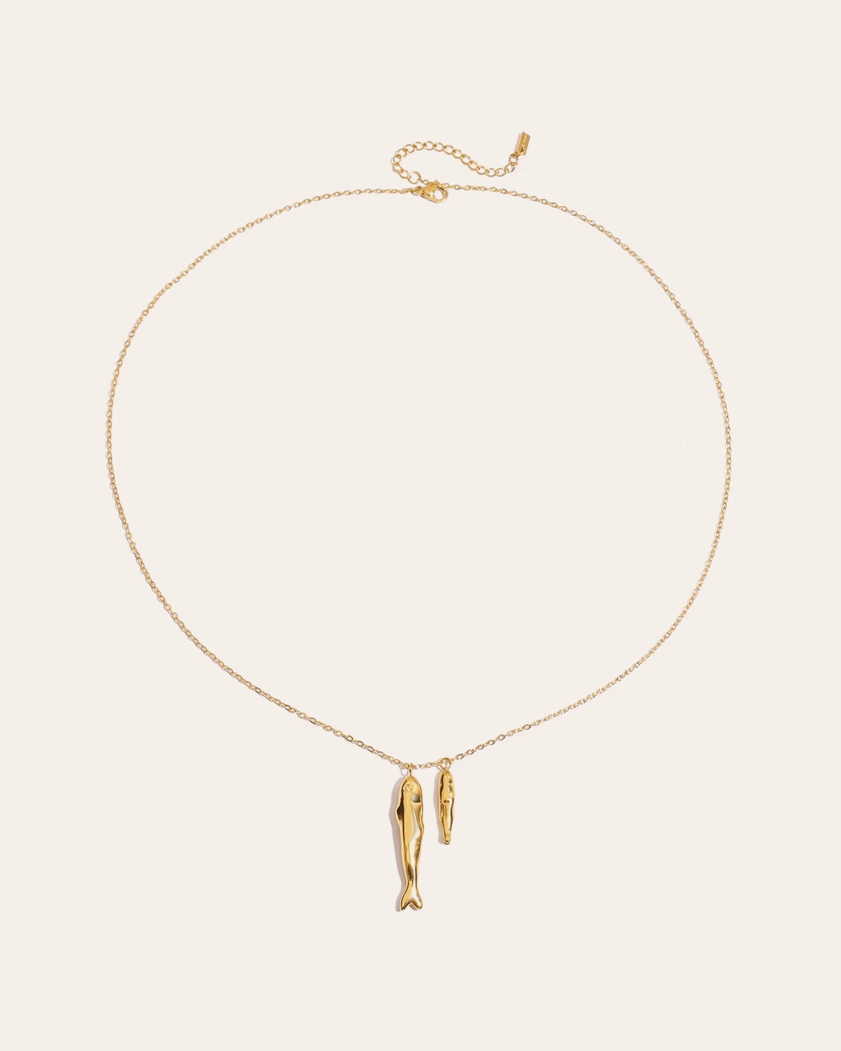 Collar de peces con un diseño sutil y atemporal lo convierte en el accesorio perfecto para cualquier ocasión aportando un brillo refinado que eleva desde el look más cotidiano hasta el más sofisticado.