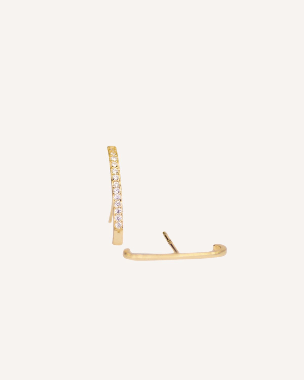 Aretes con inspiración asimétrico y orgánico. Diseñado sobre plata de ley, chapada en oro de 18 quilates decorado con lindas zirconias blancas.