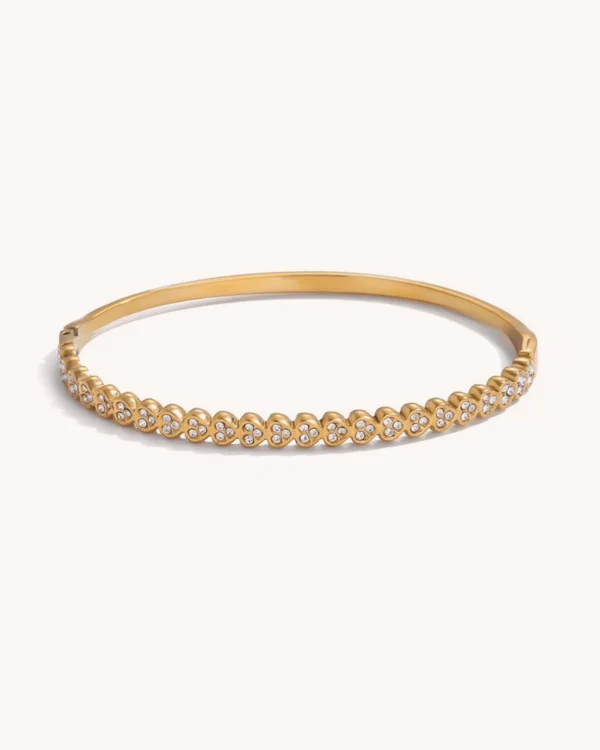 Pulsera con un diseño de mini corazones con zirconias al centro, sutil y atemporal la convierte en el accesorio perfecto para cualquier ocasión aportando un brillo refinado que eleva desde el look más cotidiano hasta el más sofisticado.